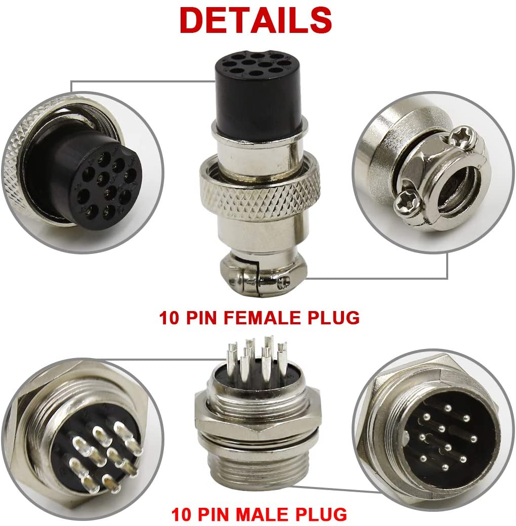 Modelo: Conector Mike 10 Vias Aviação GX16 (Completo Macho E Femea)