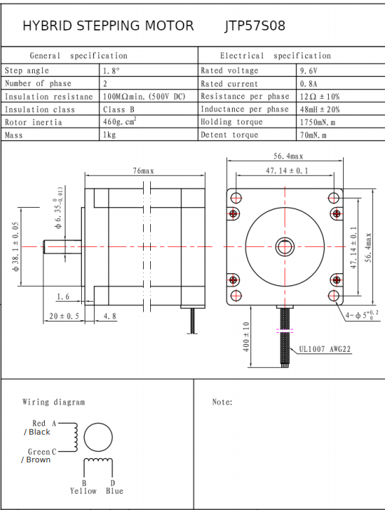 Modelo: Motor de Passo Nema 23 de 17Kgf JTP57S08