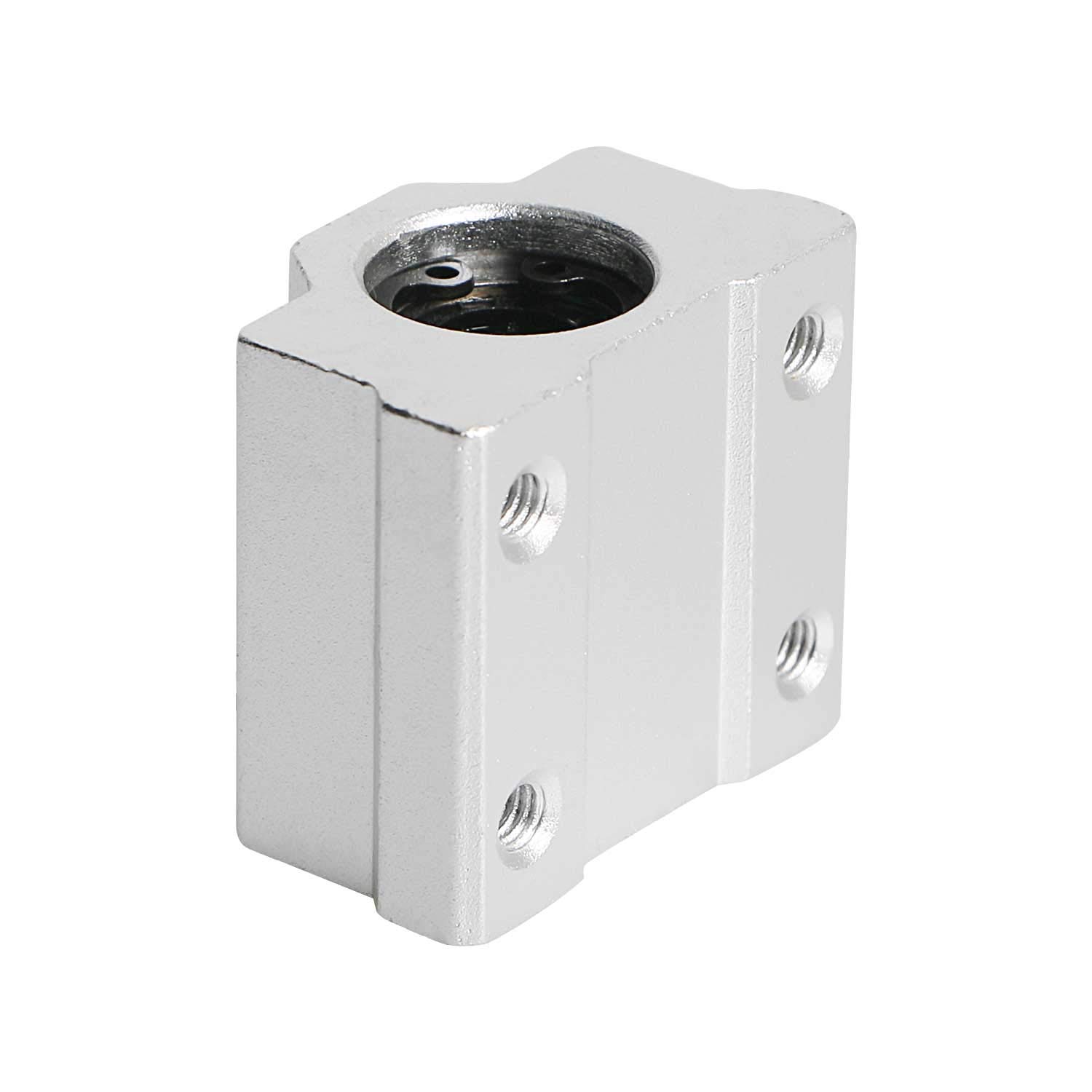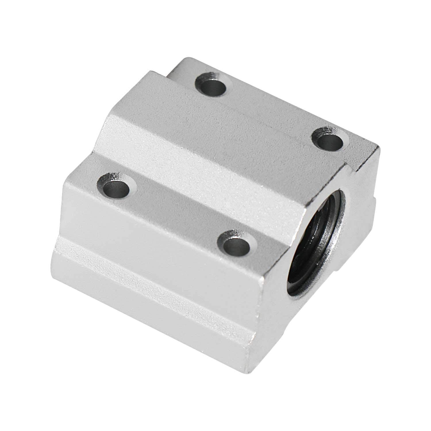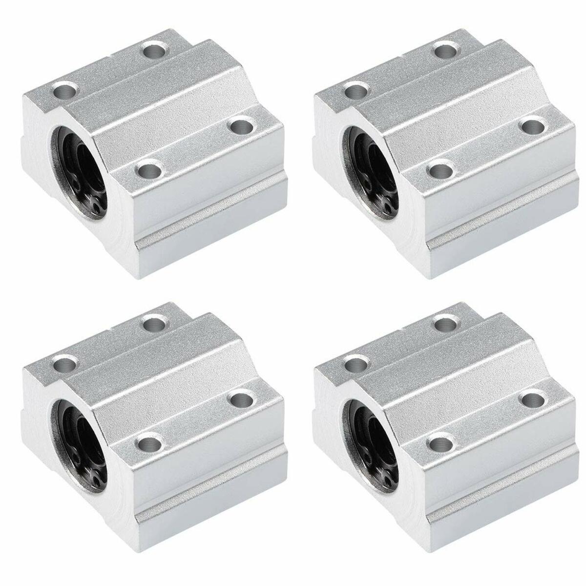 Este modelo de rolamento possui o rolamento LM na parte interna que irá correr pelo eixo e uma capa de alumínio para que seja fixado.