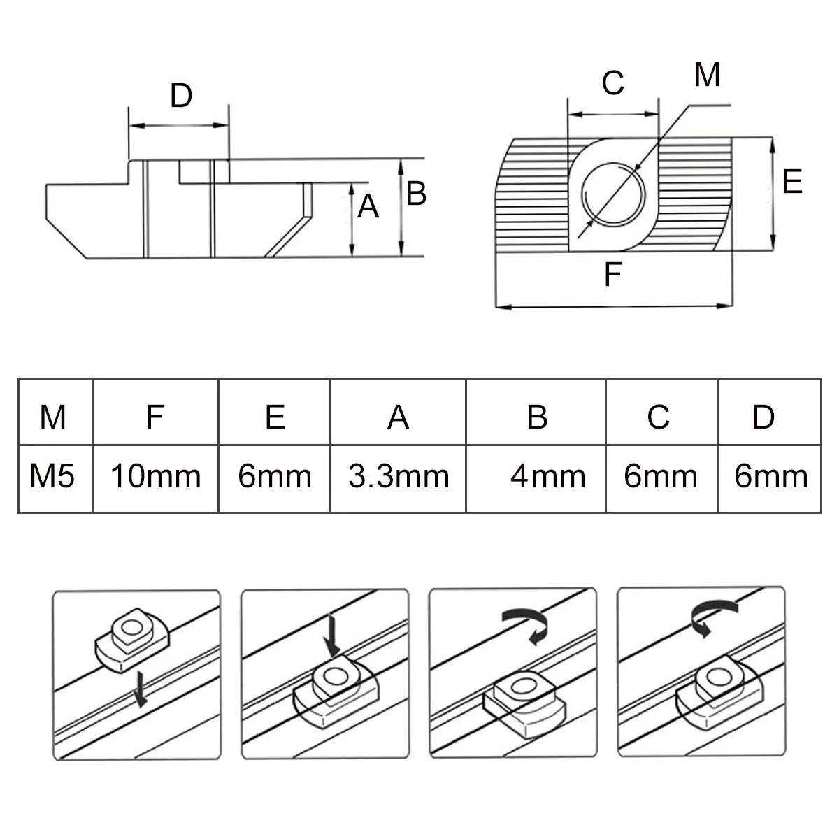 Porcas Martelo (porca T) M4 – Canal 6mm