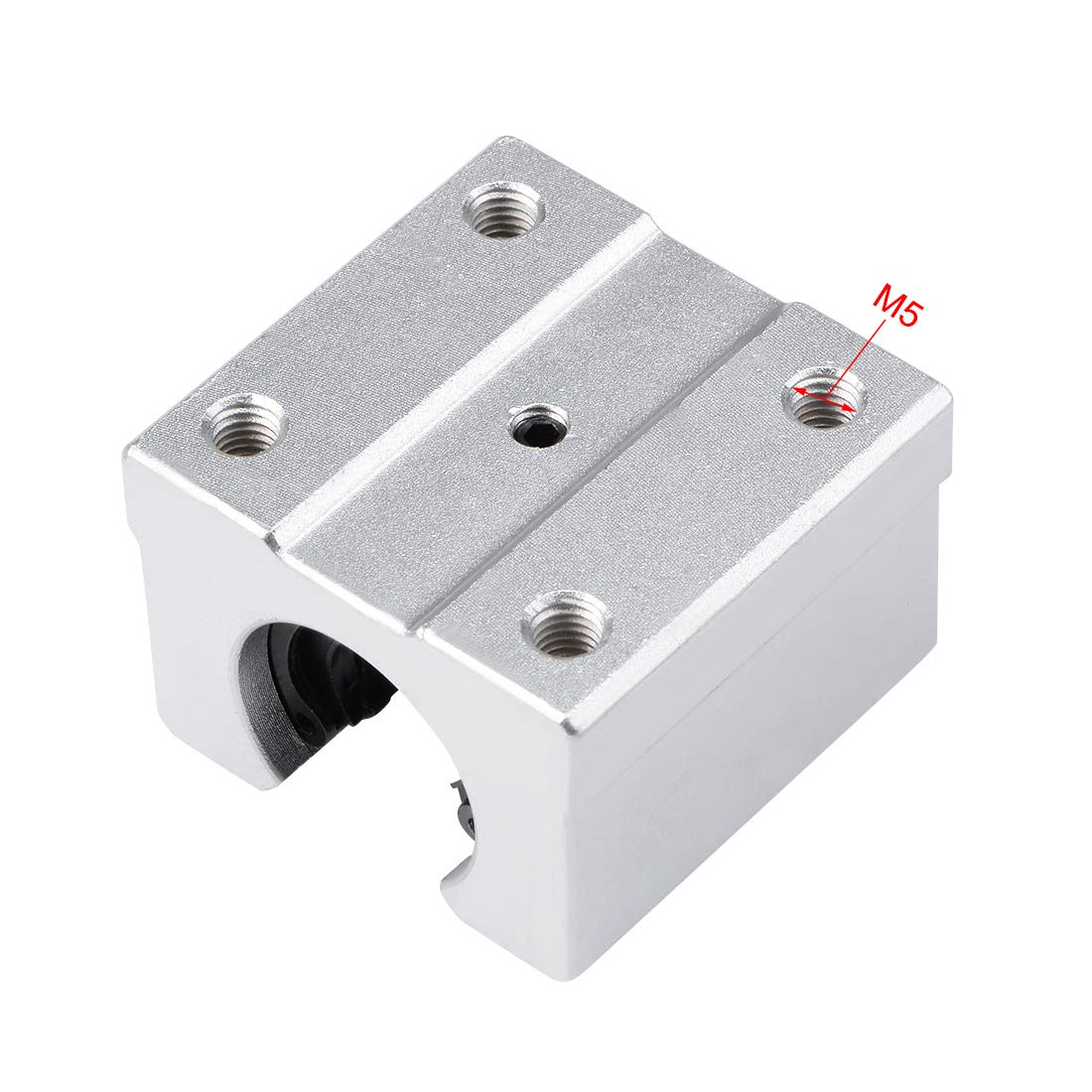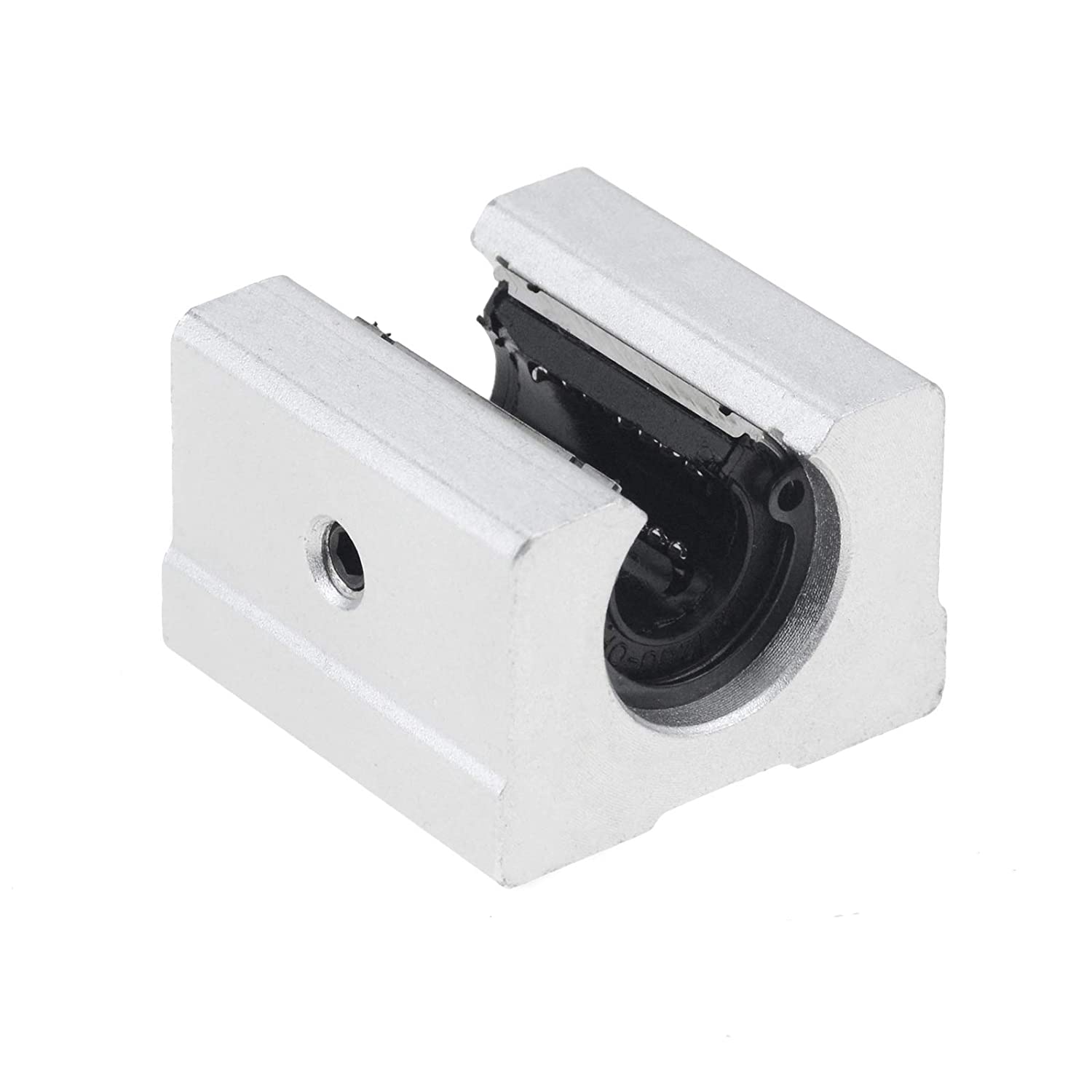 Este modelo de rolamento possui o rolamento LM na parte interna que irá correr pelo eixo e uma capa de alumínio para que seja fixado.