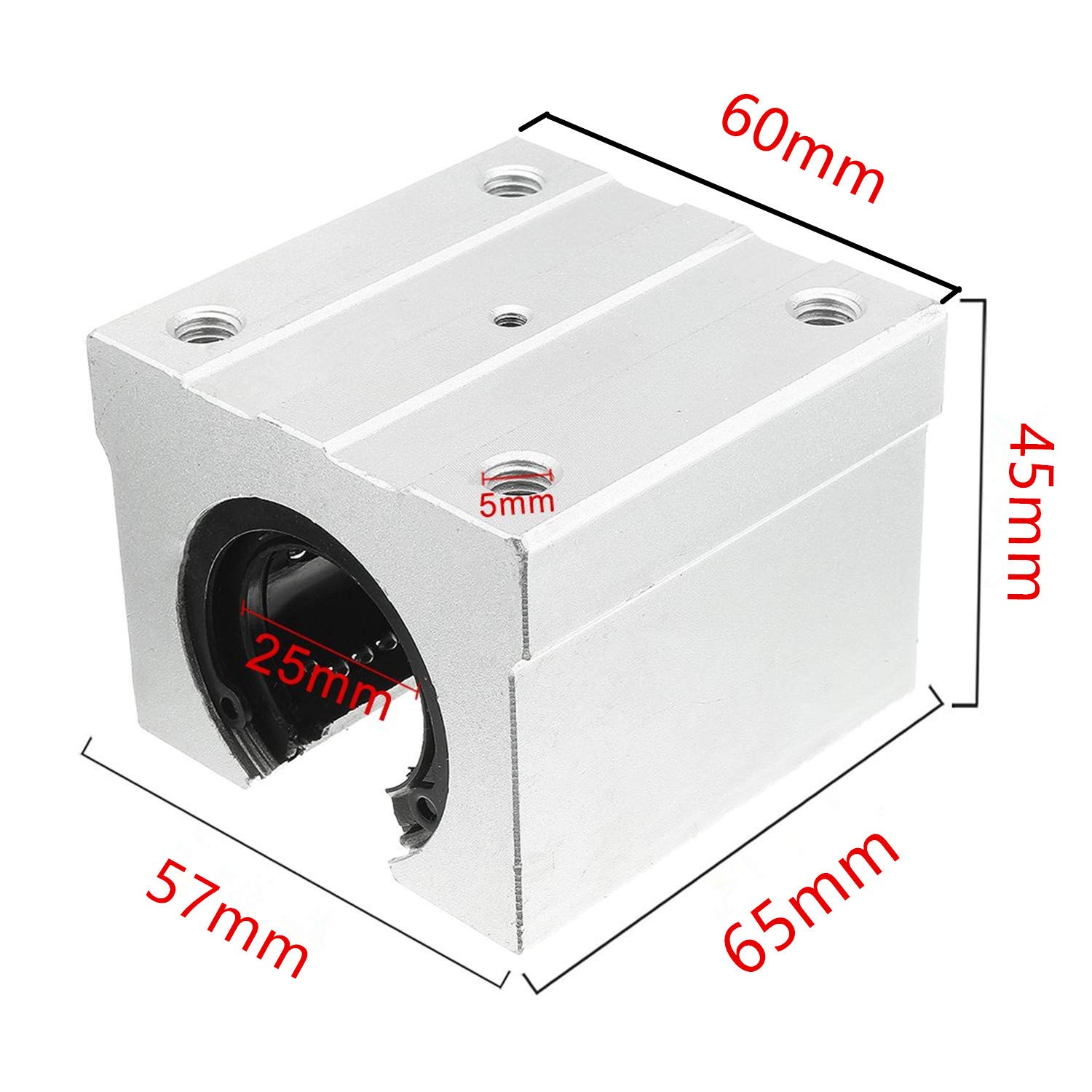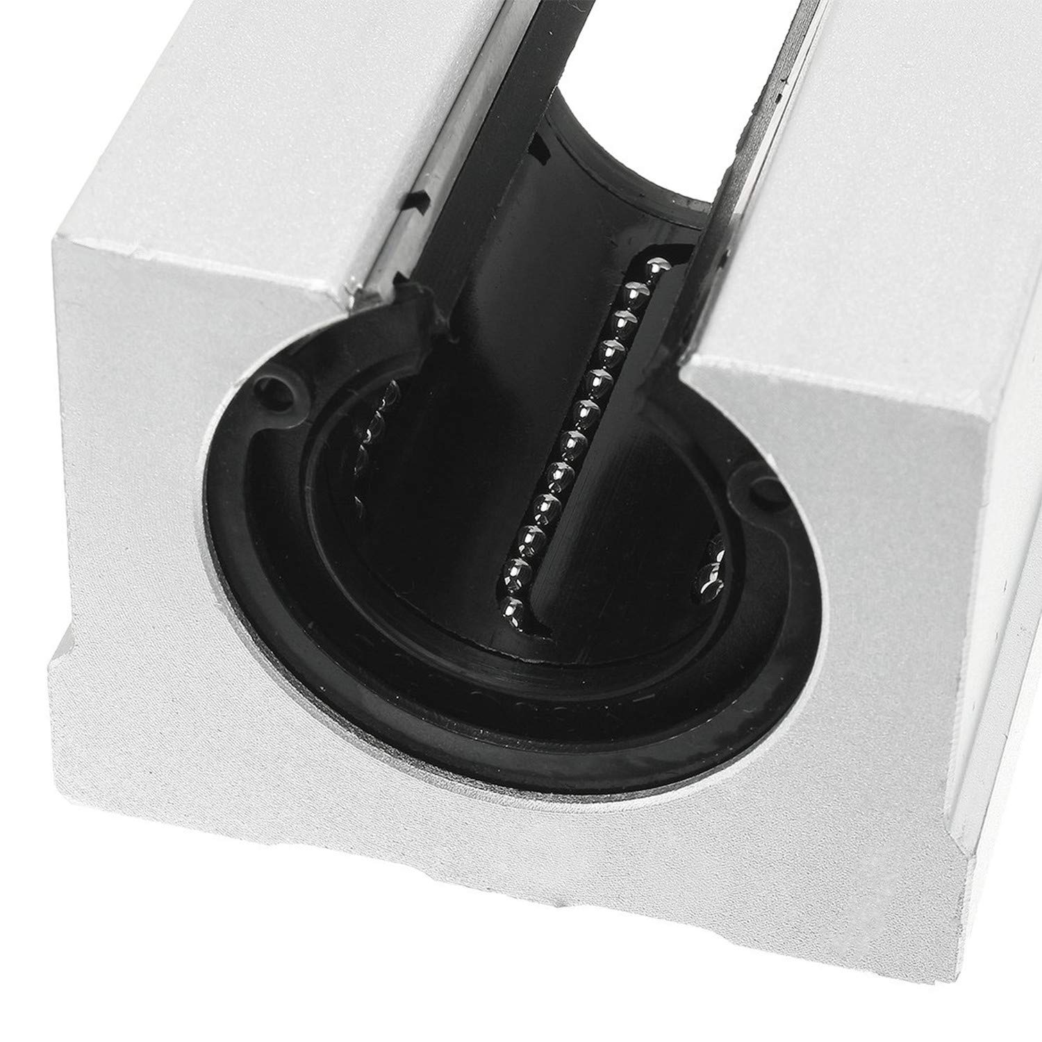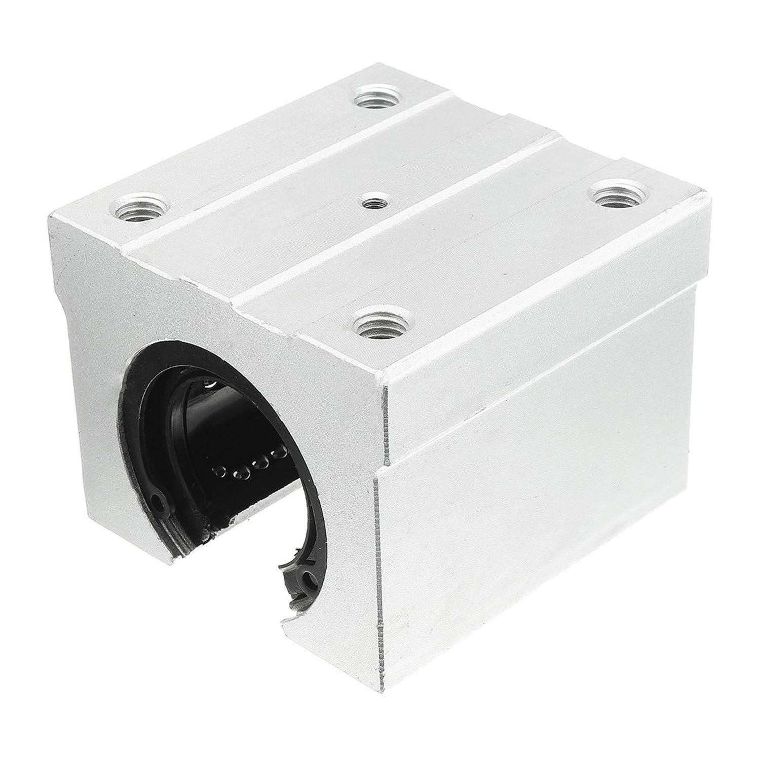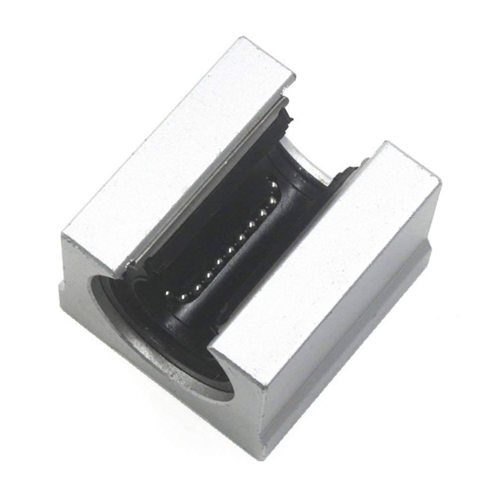 Este modelo de rolamento possui o rolamento LM na parte interna que irá correr pelo eixo e uma capa de alumínio para que seja fixado.