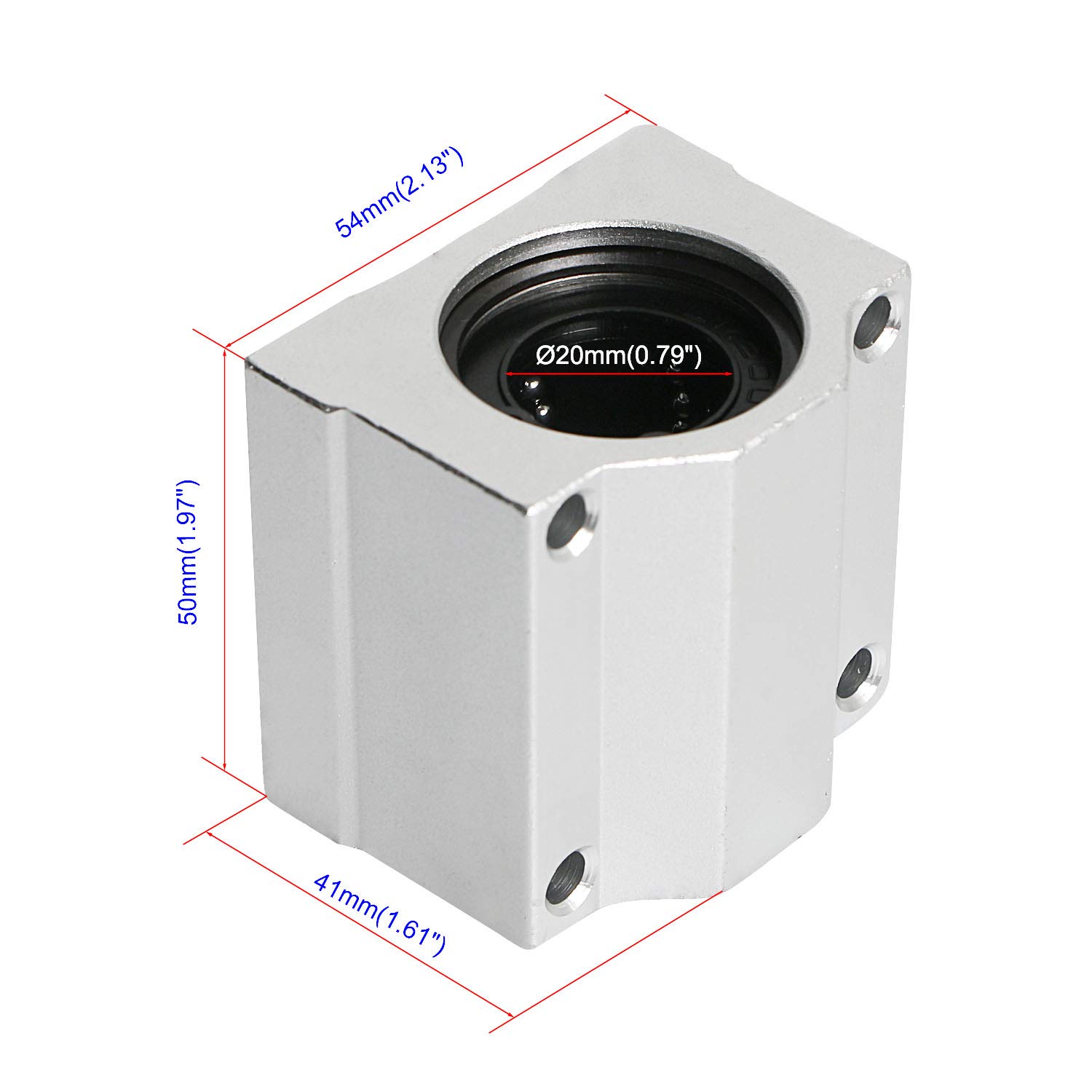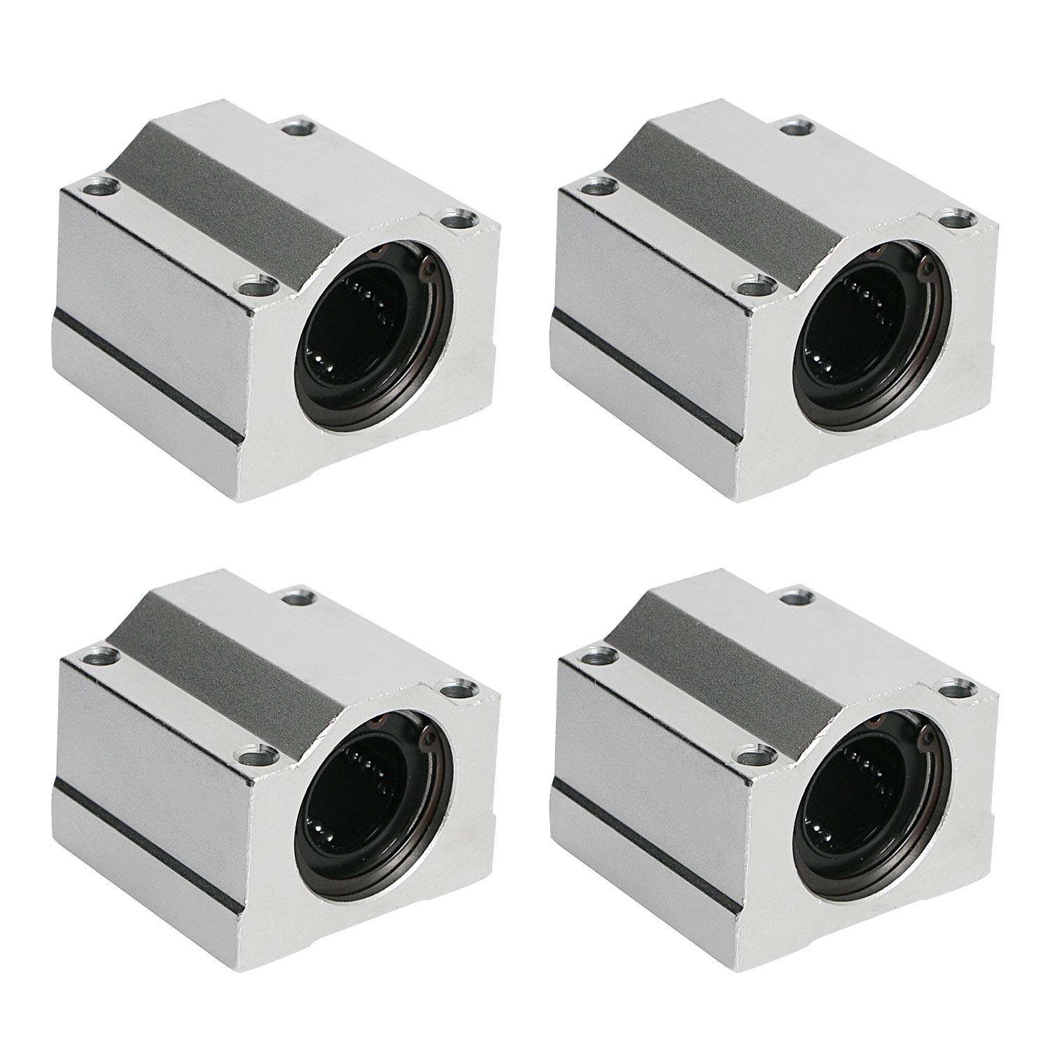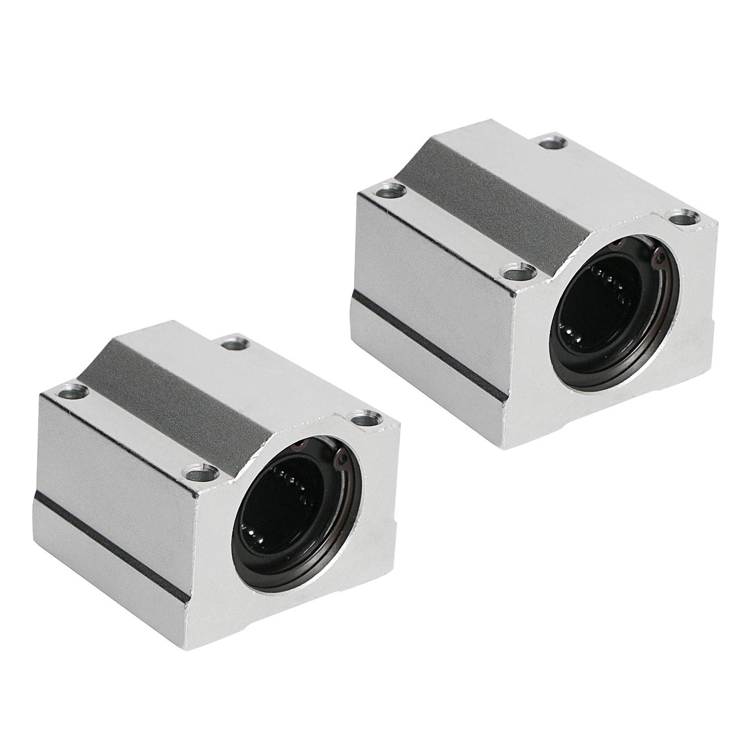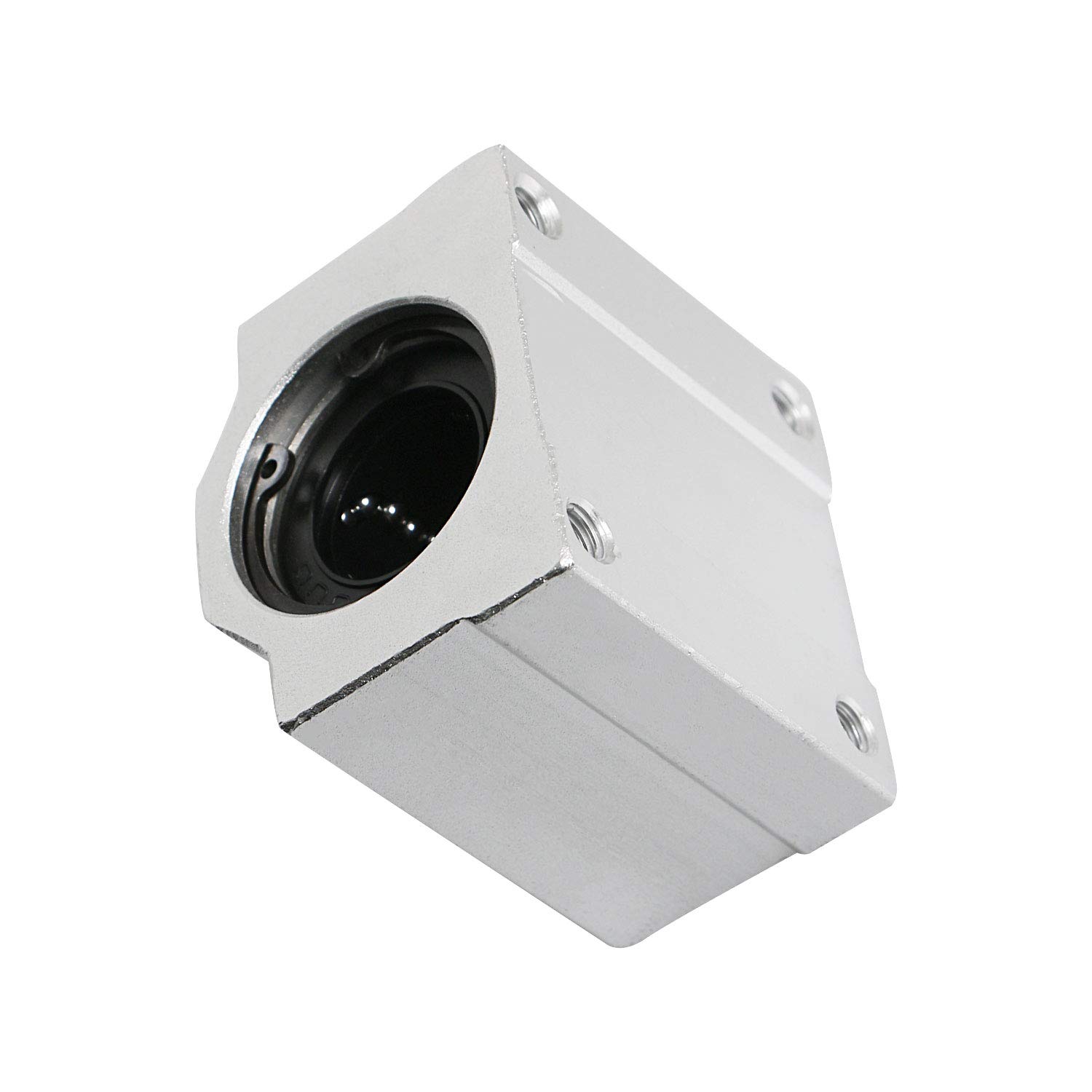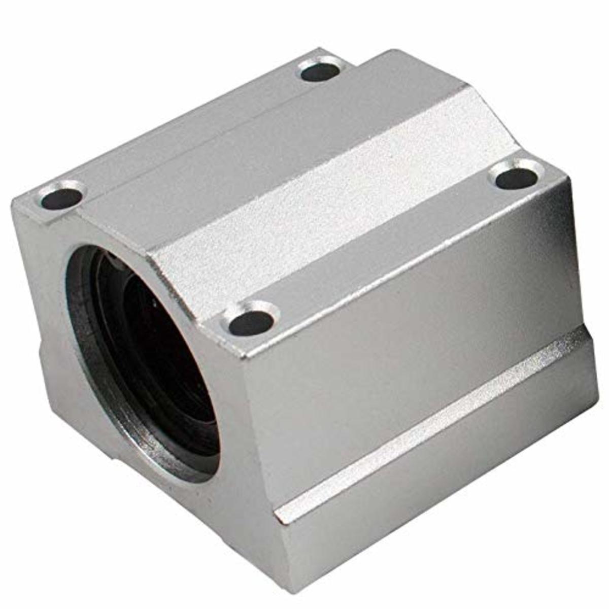 Este modelo de rolamento possui o rolamento LM na parte interna que irá correr pelo eixo e uma capa de alumínio para que seja fixado.