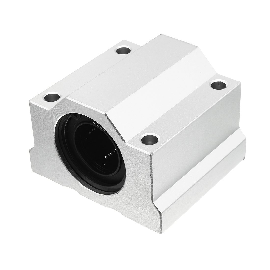 Este modelo de rolamento possui o rolamento LM na parte interna que irá correr pelo eixo e uma capa de alumínio para que seja fixado.
