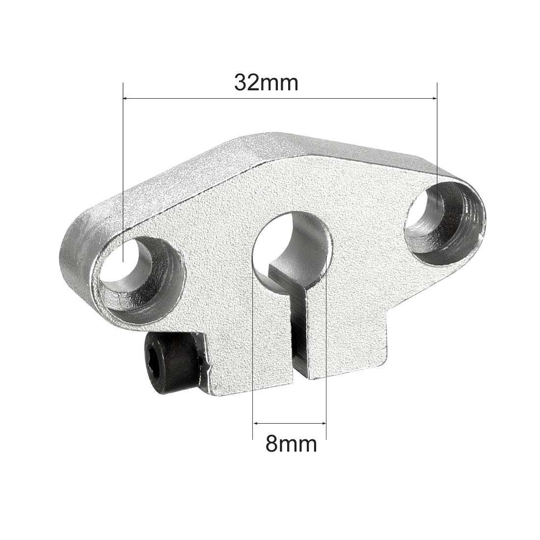 O suporte de liga de alumínio SHF8 tem como função fixar guias lineares a estrutura da maquina, e é projetado para uso em pequenas máquinas CNC, projetos lineares, impressoras 3D e outros dispositivos que utilizam guias lineares de 8 mm de diâmetro.